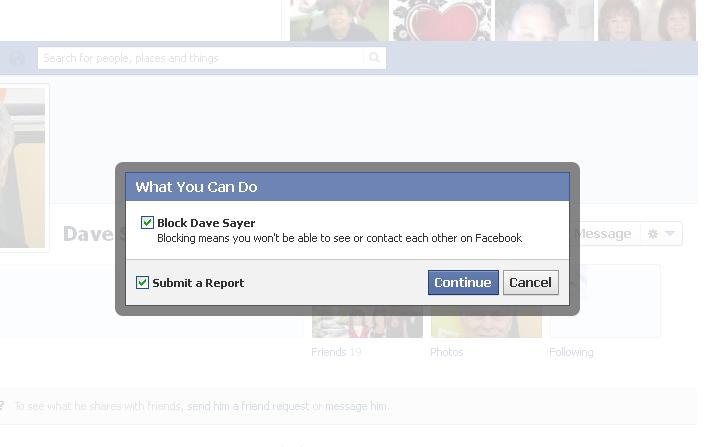 STEP #4: FINAL STEP: Select “Block” and “Sumbit a Report”. Click the continue button to complete.
