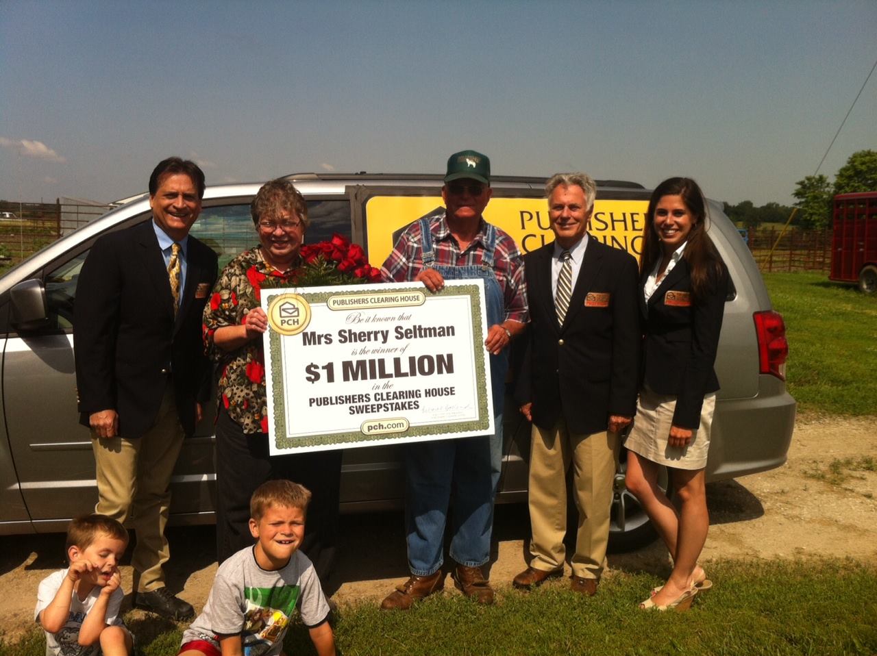 At first there were tears and hugs. Then we asked Sherry: “Do you believe it?“ — to which she replied, “No, I can’t!“ More tears and hugs. Then we presented her with a real check for $25,000.00 to show Sherry that we were serious. That convinced her and daughter and grandsons standing by that this was “for real.” Minutes later Sherry’s husband John came in from the fields, which the Seltmans have farmed for decades. At first he didn’t believe it either; but after he joined us inside and everyone caught their breath, he believed it too: Real people really win really Big Checks from PCH.